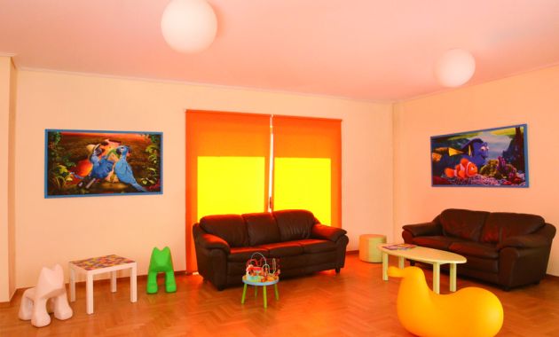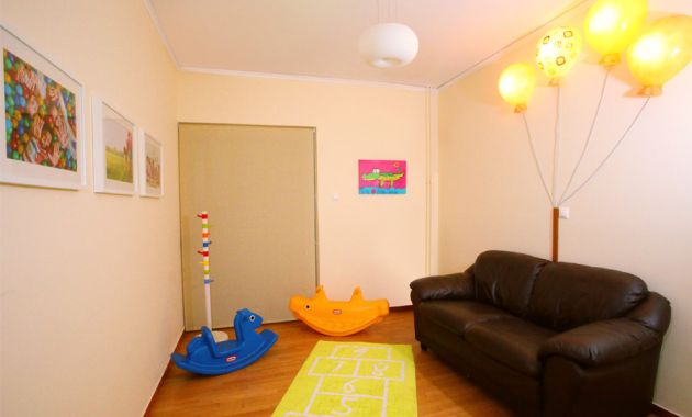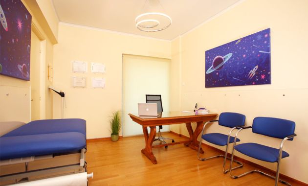 Το περιβάλλον κυριαρχείται από ζεστά χρώματα και γνώριμες φιγούρες και δε θυμίζει σε τίποτα ιατρείο. Δημιουργεί οικειότητα στα παιδιά, εξασφαλίζει την ευχάριστη αναμονή τους και ελαχιστοποιεί το άγχος της επίσκεψης.